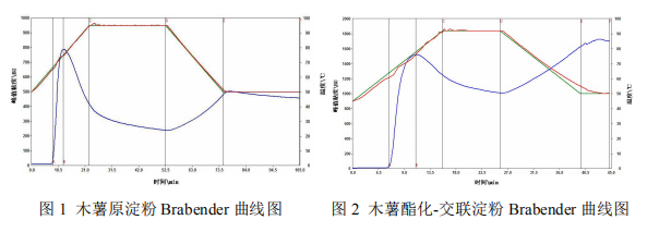 按殺菌溫度將肉制品分為高溫肉制品和低溫肉制品,高溫肉制品一般使用木 薯原淀粉較多。低溫肉制品因?yàn)闅⒕鷾囟鹊停ò退沟職⒕?65~85℃),儲(chǔ)存溫 度低(0~4℃),貨架期短(1~2 個(gè)月),因此對(duì)淀粉的要求較高。用于低溫肉 制品的淀粉要求:粘度高、粘度穩(wěn)定性好,糊液耐高溫、剪切力的影響,糊液具有較高的冷凍穩(wěn)定性和凍融穩(wěn)定性,糊液凝沉性弱,儲(chǔ)存穩(wěn)定。在肉制品中添加 能夠起到粘合、填充、增強(qiáng)持水性等作用,防止肉汁流失,使制品具有良好的彈 性,切片性好,長(zhǎng)時(shí)間儲(chǔ)存及冷凍后仍能保持良好的口感及組織形態(tài)。淀粉的主 要變性類型是酯化、醚化、交聯(lián)淀粉及其復(fù)合變性淀粉,其中以酯化-交聯(lián)淀粉 為主,添加量為 5~15%。木薯原淀粉及酯化-交聯(lián)淀粉的粘度曲線如圖 1 圖 2。