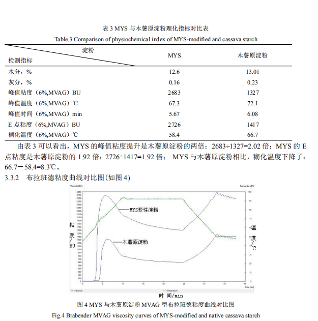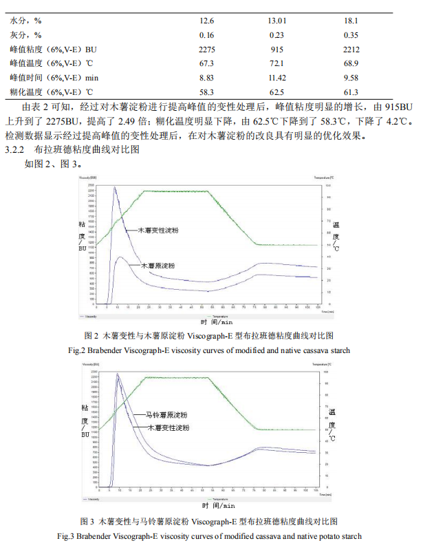 (5)高峰值木薯變性淀粉與馬鈴薯淀粉糊化溫度對(duì)比:61.3-58.3=3.0℃: