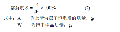 將淀粉樣品懸浮在 30℃的水中攪拌 30min,在 3000r/min 轉(zhuǎn)速下離心 30min,取上清液 分離后蒸干,于 105℃烘干至恒重(3h),即得水溶淀粉的量,計(jì)算出溶解度。