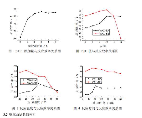 Key words: sodium triphosphate; vinyl acetate; reaction efficiency; response surface design;